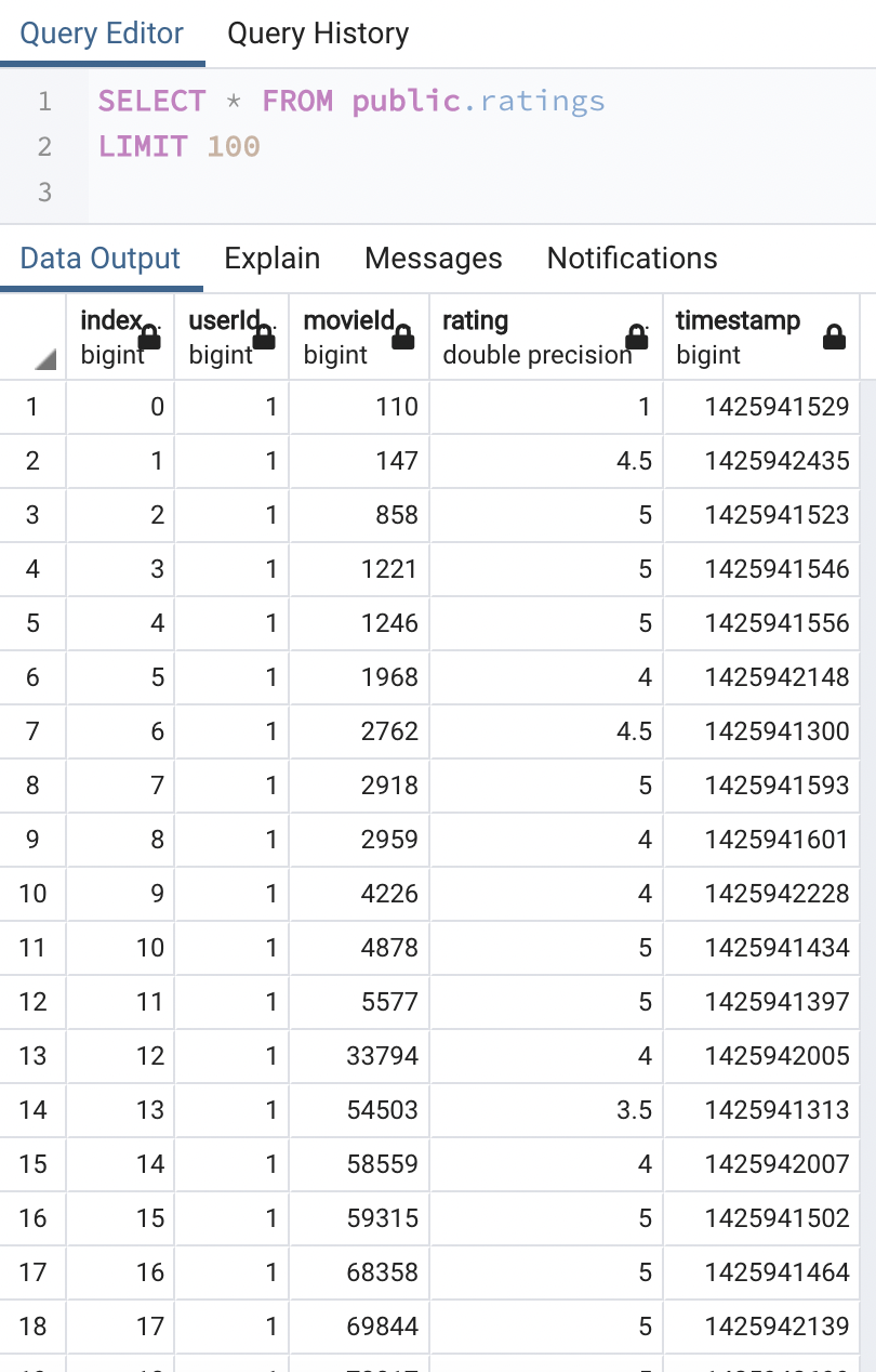The one JSON file and two CSV files were extracted, transformed, and joined. The movies and ratings files were loaded into a database for the Amazing Prime Hackathon.