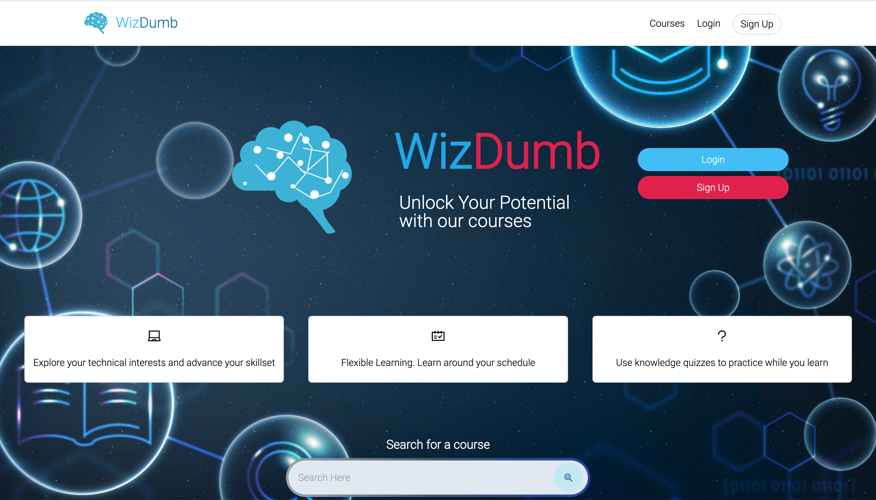WizDumb is an e-learning platform that offers a wide range of short courses in JavaScript, HTML, CSS, Node.js, Express.js, GitHub, and React. The platform aims to provide a comprehensive learning experience for individuals looking to enhance their skills and knowledge in web development technologies. With user-friendly interfaces and interactive content, WizDumb makes learning fun and accessible to users of all skill levels.
